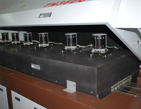 1:加熱系統(tǒng): 六溫區(qū)全熱風(fēng)無鉛回流焊TN360C加熱系統(tǒng)采用節(jié)能的鎳?yán)影l(fā)熱管,技術(shù)先進(jìn),壽命長。熱風(fēng)循環(huán)系統(tǒng),使PCB及元器件受熱均勻,效率高,升溫速度快。